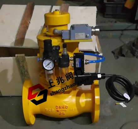 上海上兆閥門制造有限公司提供的緊急切斷閥廣泛用于石油、天然氣、化工、電力、冶金、國防科技、礦山、船舶、食品、醫藥、供水、暖通、城建等重要領域。 0QDQ421F電磁動緊急切斷閥--用途: 0QDQ421F電磁動緊急切斷閥分單作用式與雙作用式,能夠實現遠距離控制啟閉,啟用僅需按一下控制按鈕,其余事項均在指定時間內自動完成,單鈕安全啟閉設置急停按鈕,確保操作安全,如加裝遠程信號反饋系統,可于遠距離控制室直接獲悉閥門運行狀態。 0QDQ421F電磁動緊急切斷閥作用原理及結構說明: 1、單作用式工作原理:閥門在無外壓力操作情況下,閥瓣處于常閉狀態,在管道或貯罐系統上使用時,靠電源和氣源的壓力將閥門打開,在氣路的壓力使用下閥門處于開啟狀態,當需要關閉閥門時,可將電源或氣源壓力泄掉,閥門即自動關。 2、閥瓣關閉時,壓力是依靠打開泄壓閥來實現。 3、常開式可采用單作用代替或按要求訂做。 4、雙作用式工作原理:當控制器按事先編好的程序對某個電磁換向閥輸出一個電信號,該電磁換向閥動作,使帶壓儀表氣源通過電磁換向閥的切換進入氣動執行機構的氣缸下腔推動活塞向上運動,活塞帶動閥桿,閥桿提動閥芯使閥門開啟,切斷換向閥電信號,使活塞反向運動使閥門關閉,這種閥門配置稱為常閉式。反之,要做成常開式只需在電磁換向閥與氣動執行機構的連接方式變換一下就能實現.