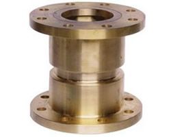 減壓閥的構造類型很多,以往常見的有薄膜式減壓閥、內彈簧活塞式減壓閥等。減壓閥的基本作用原理是靠閥內流道對水流的局部阻力降低水壓,水壓降的范圍由連接閥瓣的薄膜或活塞兩側的進出口水壓差自動調節。近年來又出現一些新型減壓閥,如定 比式減壓閥,其構造原理如圖14.2-2所示。定比減壓原理是利用閥體中浮動活塞的水壓比控制,進出口端減壓比與進出口側活塞面積比成反比。這種減壓閥工作平穩無振動;閥體內無彈簧,故無彈簧銹蝕、金屬疲勞失效之慮;密封性能良好不滲漏,因而既減動壓(水流動時)又減靜壓(流量為0時);特別是在減壓的同時不影響水流量。