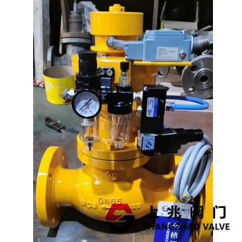 安裝之前,檢查并除去氣動切斷閥所有運輸擋塊、防護用堵頭或墊片表面的蓋子,檢查閥體內部以確保不存在異物;氣動切斷閥應安裝在水平管道上,并上下與管道垂直,一般要在閥下加以支撐,保證穩固可靠。對于特殊場合下,需要氣動切斷閥水平安裝在豎直的管道上時,應將調節閥進行支撐。