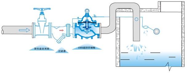 100X遙控浮球閥由主閥、針閥、球閥、浮球閥、微型過濾器等組成水力控制接管系統(tǒng),調(diào)定后,自動控制液面高度。本產(chǎn)品直接利用液面控制,不需要其它裝置和能源,保養(yǎng)簡便,液面控制準確度高,不受水壓影響,密封可靠。 廣泛用于高層建筑、生活區(qū)等供水管網(wǎng)系統(tǒng)的水塔、水池等設(shè)施的液面控制。