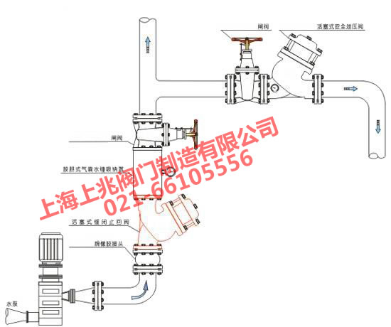 二、方便日后對該閥進行檢修工作.必須在塞式緩閉止回閥后安裝可曲繞軟連接;